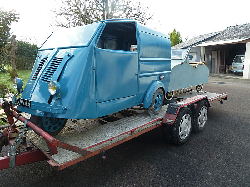 Propriétaire : Nathalie CU. ,Angèle et Coline NEW-MAP SOLYTO de 1964 Fabrication française à LYON Triporteur (3 roues) fourgonnette moteur NEW-MAP 125 cm3, 2 temps 2 places carrosserie tôle (restaurée) et capote